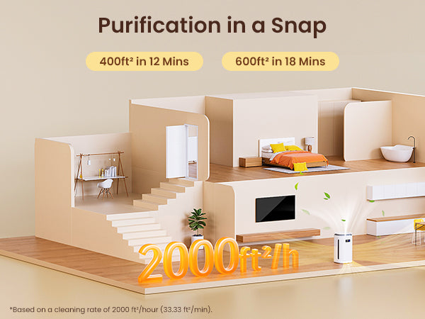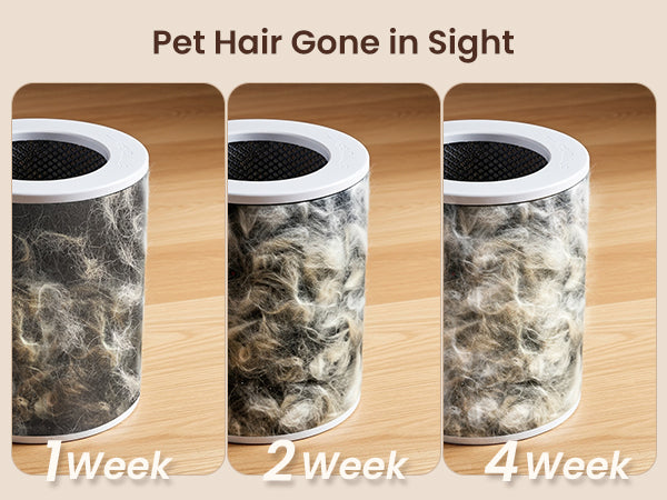 See Results in 1 Hour. This pet air purifier acts like a powerful 360° shedding magnet, grabbing cat hair off couches and dog hair from clothes. Reduces 99.7% of floating pet hair and dander within one hour. The advanced H13 HEPA filter traps dust, pollen and other harmful particles up to 3,000x smaller than a grain of sand, easing symptoms for you and your pets. Cleans up to 2000 Sq Ft., it's ideal as an air purifier large room. - Can't Stand Litter Box or Wet-Dog Smell?