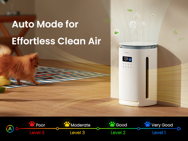 Never Guess Your Air Quality Again. Stop wondering why you're sneezing. The built-in real-time PM2.5 sensor and intuitive Paw Light Indicator let you "see" the air improve. Set your HEPA air purifier to Auto Mode, and it intelligently self-regulates to maintain a healthy environment for your pet's tiny lungs—so you can truly relax. - Save 50% on Filter Costs