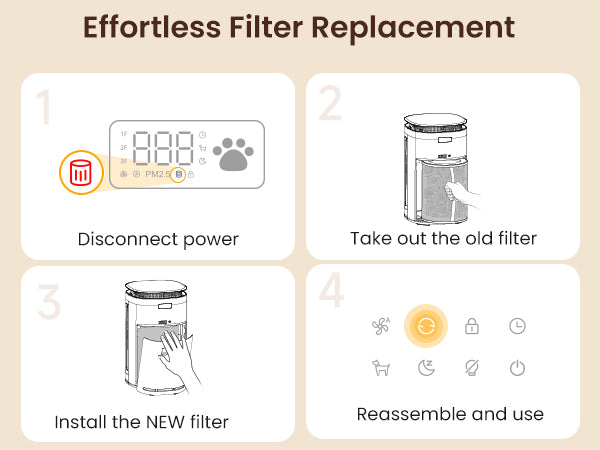 Tired of frequent, expensive filter changes with air purifiers? The washable pre-filter traps hair and large debris upfront, extending the core HEPA filter's life to 8 months (2X longer)! This simple innovation can cut your yearly filter replacement costs by half, so you can focus on fun with your pet. - Noisy, Stuffy Nights Keeping You Up?