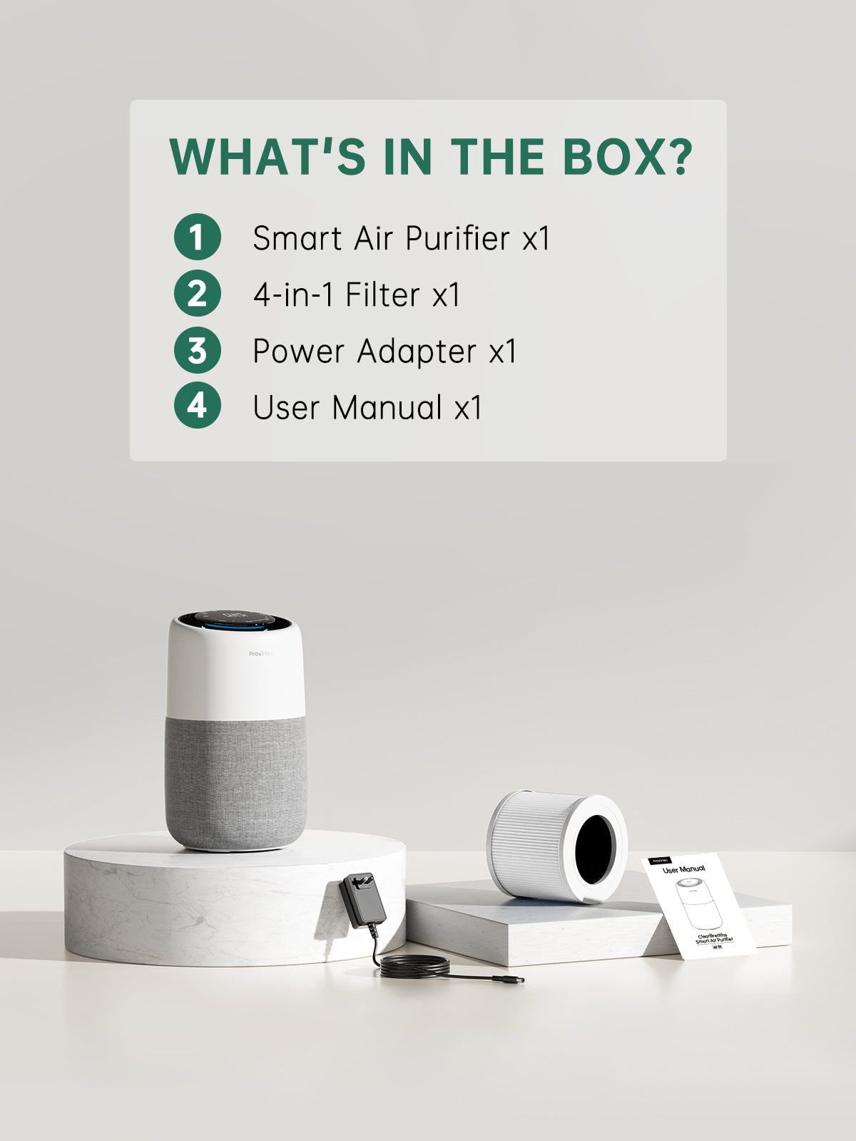 The Provirtec filter lasts up to one year, saving you from frequent replacements. Our proprietary algorithm accurately calculates the remaining filter life based on fan speed, usage time, and pollution levels.